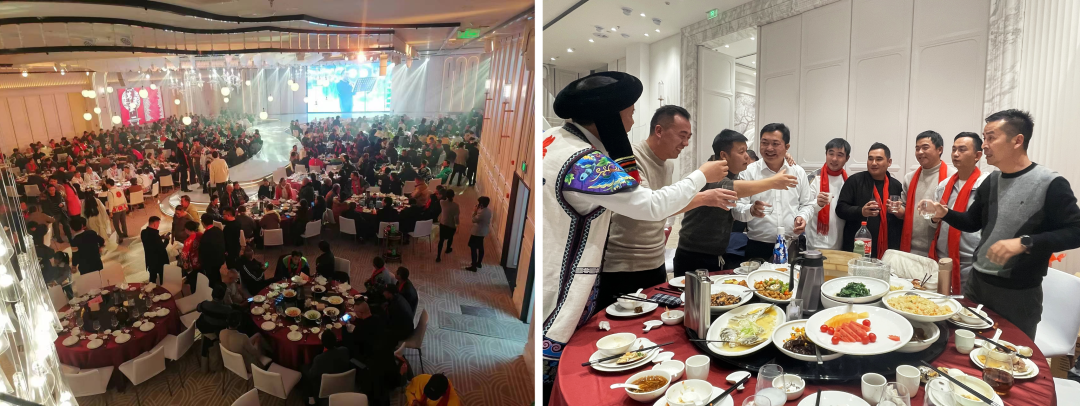 大家在欣赏文艺节目的同时,围桌而坐,享受着美味佳肴。集团领导逐桌敬酒,大家觥筹交错,互致问候。与此同时,抽奖活动也在文艺表演中穿插进行。随着一阵阵尖叫声、嬉闹声,毛毯、足浴桶、电炸锅、平板电脑、电动自行车等奖品也纷纷“名花有主”。