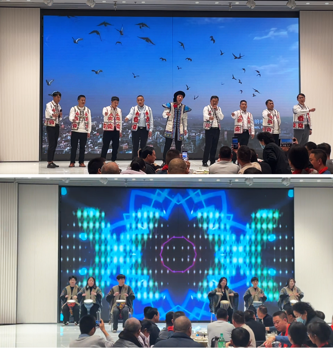晚会上,雄宇家人们还自编自演了丰富多彩的文艺节目。舞蹈《恶狼传说》和《奢香夫人》,婀娜多姿,激情四溢;舞蹈《桃花朵朵开》缓歌缦舞,鸾回凤翥。具有民族特色的《云南祝酒歌》,歌声浑厚有力,演员们身着民族服装,载歌载舞,与观众亲密互动,将晚会推向了高潮。小品《狭路相逢勇者胜》诙谐幽默,古筝《良宵引》意蕴悠扬,诗朗诵《沁园春 长沙》慷锵有力。
