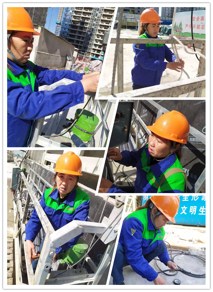 王明芬大姐,是四川达州人,今年51岁。2020年5月份经爱人陈家虎引荐入职雄宇集团,在苏州区从事租赁外场的吊篮维护管理工作。她是该批入职员工中的佼佼者。在实习期间,为了尽早的适应吊篮维护和管理工作,她每天早上5点起床,赶到工程现场的楼顶,与外协安装队伍一起工作。不了解吊篮安装的流程,她就主动向安装人员请教,学习如何拧螺丝,如何测量安装位置,直到能熟练掌握全套流程。吊篮的维修工作大多是在高空中进行的,为了克服恐高心理,王明芬有意识地锻炼自己,经过两个月的不懈努力,她不仅逐步掌握了吊篮的维修技术也成功地克服了恐高症。七八月份的苏州,骄阳似火,王明芬顶着烈日穿梭在工地的各个角落,参与整个项目的维护和协调。虽然她白净的皮肤慢慢变黑了,但客户对她的态度从开始的排斥也慢慢变成了认可,现在大家都尊称她“王大姐”。