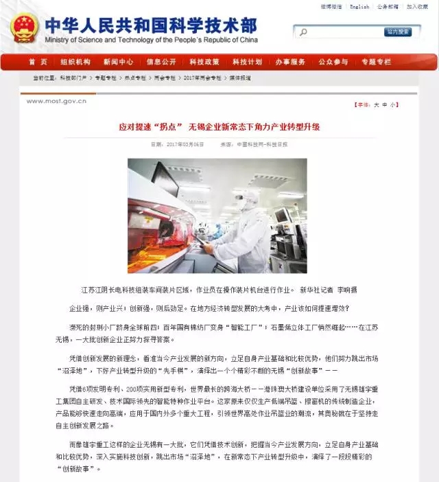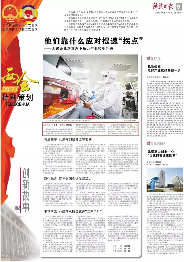 企业强,则产业兴;创新强,则后劲足。在地方经济转型发展的大潮中,产业该如何提速增效?中国科技日报于两会期间对无锡创新产业进行了特别报道,雄宇集团榜上有名。