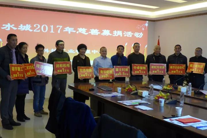 2017年12月4日下午,山水城2017年慈善募捐活动在雄宇集团五楼会议室举行。本次活动由科技工业管理中心牵头,共有富士时装、金华屹圆科技、雄宇重工、润和机电、威尔达自动机械、中卓智能科技、二泉太阳能、河淳建筑装饰、宏杰电器配件、雷虹冷却液、福兰德科技、腾华电缆材料、铭优通机械制造、沈氏精密轴承、申科生物技术、巨龙塑化、宏达科技、雪浪电子焊料、久川合成材料等企业参加本次活动。山水城科技工业管理中心副主任肖爱华同志主持了本次活动。