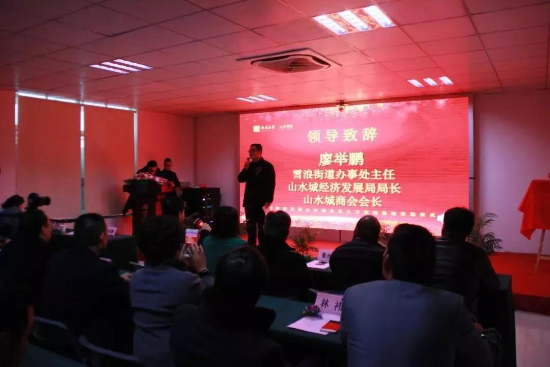 (雪浪街道办事处主任、山水城经济发展局局长、山水城商会会长廖举鹏致辞)