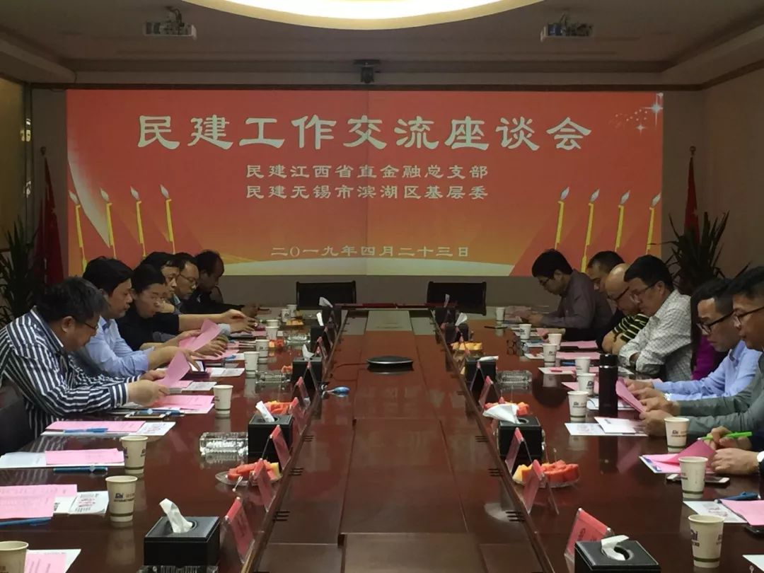 2019年4月23日上午,在雄宇集团五楼会议室,民建江西省直金融总支委与民建无锡市滨湖区基层委员会联合召开了基层组织建设及民营经济发展座谈会。民建江西省委常委、金融总支主委周媛娇、民建无锡市委副主委兼秘书长王萍、民建市委常委、滨湖区基层委主委李圣健等领导参加了座谈会。