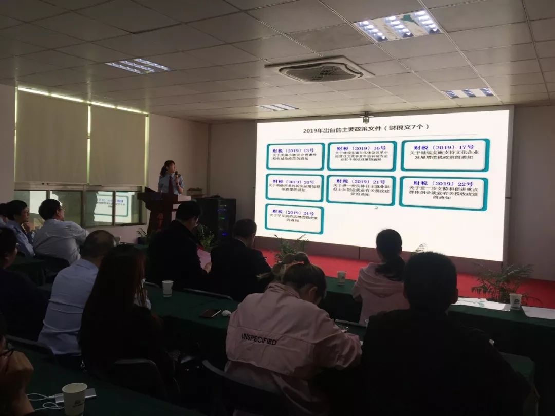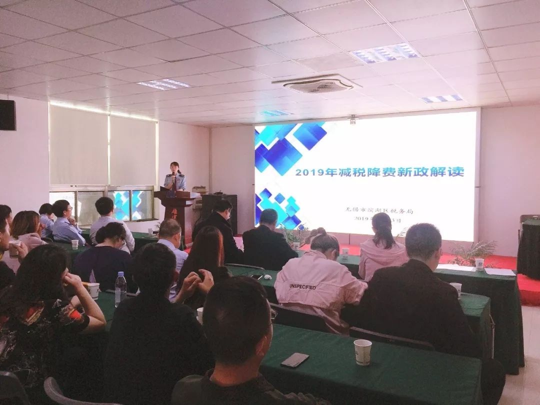 讲座正式开始后,先是由于研昊副股长给大家具体讲解了的减税降费政策。她围绕着新税制推行后,企业纳税面临的难点问题作了深入浅出,通俗易懂、图文并茂的讲解,使大家受益匪浅。