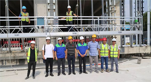 ,市站领导一行观摩了雄宇集团的智能化新式吊篮。通过现场演示,由谢家学总裁向市站领导汇报了雄宇集团在新国标颁布后所取得的系列创新成果。市站领导指出雄宇集团作为吊篮行业标杆企业,应强化协同创新,实现由传统制造业向智能化改造的转变,逐步赢得了增长的新动力、市场的新优势,从而实现高质量发展。