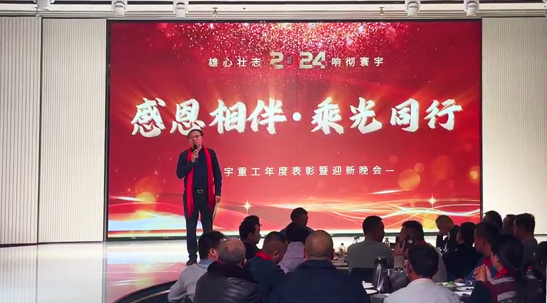 集团董事长谢家学首先致辞。他回顾了集团一年以来的各项工作,并对关心和支持雄宇发展的各级领导、社会各界朋友、以及辛勤工作的各位雄宇家人表示衷心的感谢。他在分析了当前国家政策和国内国际形势后指出,2024年雄宇仍然有挑战,仍然有困难,但更有机遇,更有希望。他号召全体雄宇家人撸起袖子,加油干。听了董事长的致辞,与会人员群情振奋,霎时间,会场内掌声雷动。